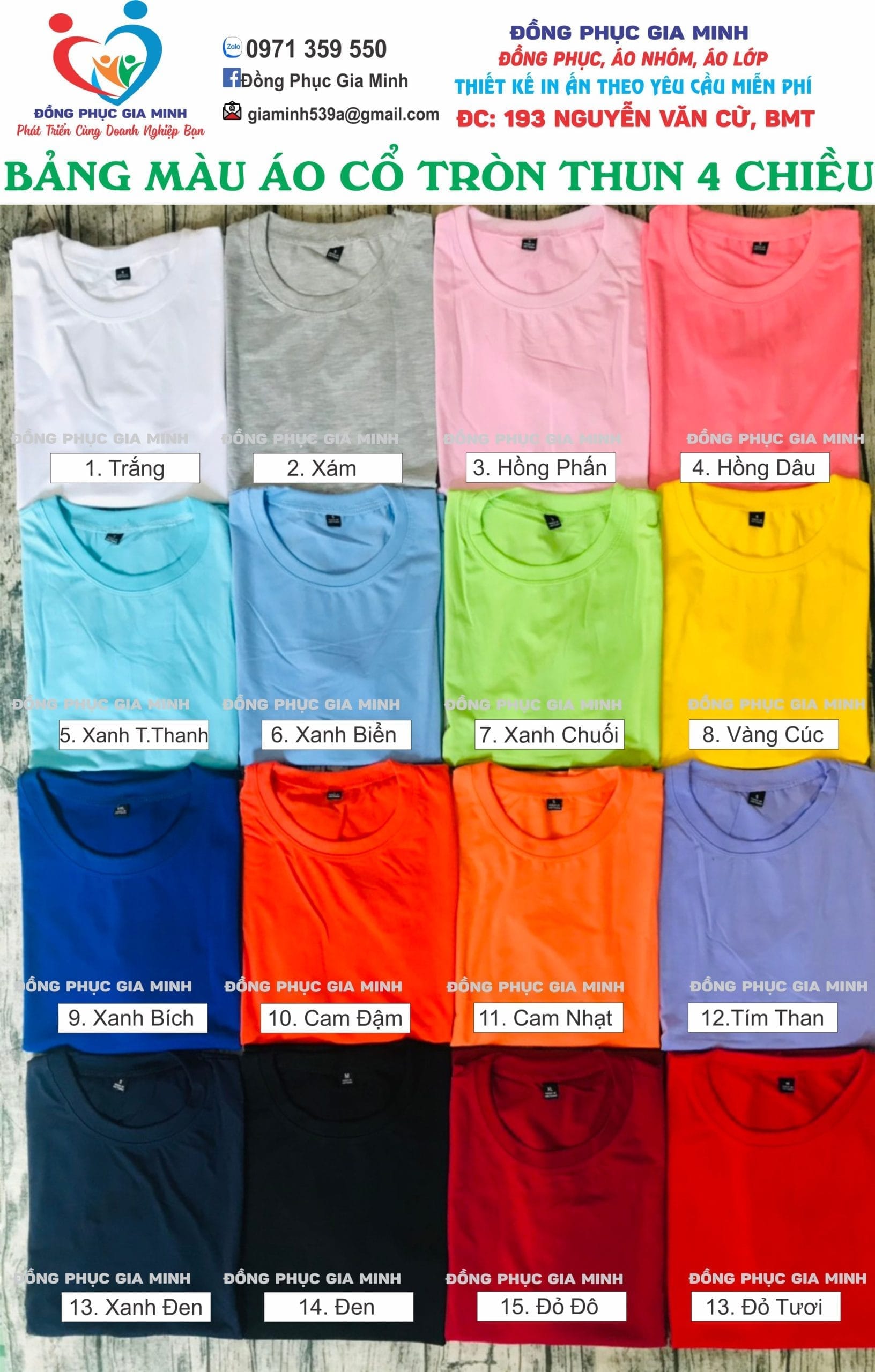 • Màu sắc: Màu sắc áo thun nên được chọn dựa trên logo và phong cách của thương hiệu. Việc chọn màu sắc hài hòa sẽ giúp thương hiệu của bạn trở nên nổi bật hơn.