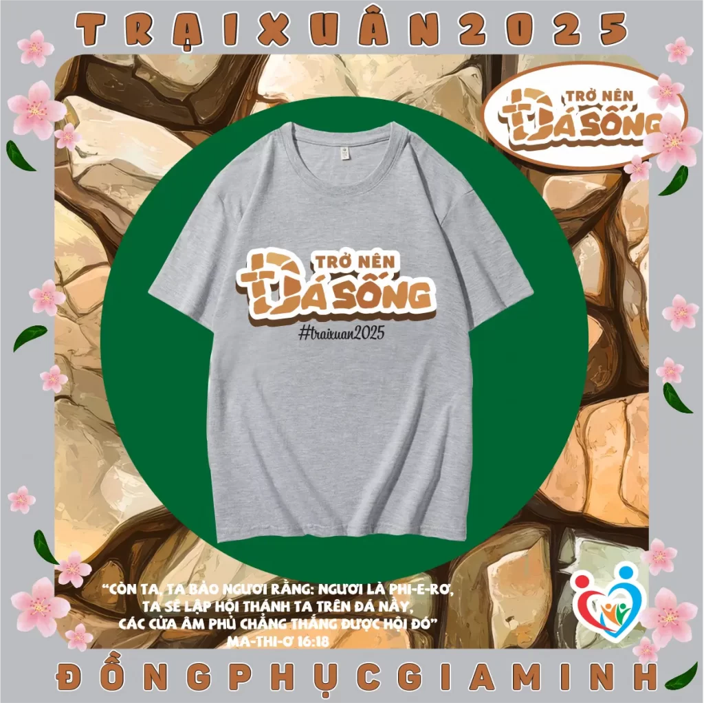 Áo thun cổ tròn “Trở Nên Đá Sống” được thiết kế dành riêng cho những hoạt động trại xuân đầy ý nghĩa, mang lại sự thoải mái, trẻ trung, và cá tính. Đây không chỉ là một chiếc áo đồng phục thông thường mà còn là biểu tượng cho sự đoàn kết và năng lượng tích cực, giúp mọi người thêm gắn bó trong những khoảnh khắc đáng nhớ.