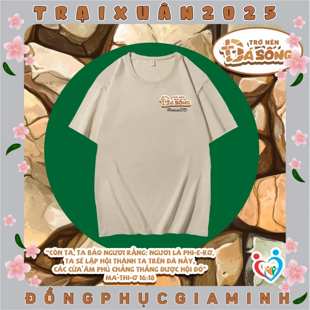 Dưới đây là những gợi ý thiết kế áo đạo mang thông điệp yêu thương, hy vọng và đức tin, phù hợp với tinh thần của Trại Xuân 2025: