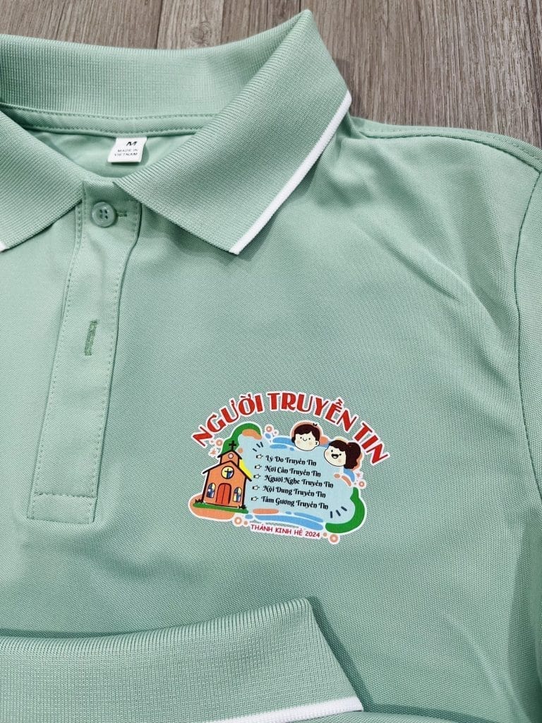 Mẫu áo đồng phục Tin Lành trong hình là một thiết kế áo polo cổ bẻ, mang phong cách trang nhã với màu xanh pastel nhẹ nhàng. Áo có viền trắng ở cổ áo và tay áo, tạo điểm nhấn tinh tế và giúp chiếc áo trở nên nổi bật hơn. Phía trước ngực trái […]